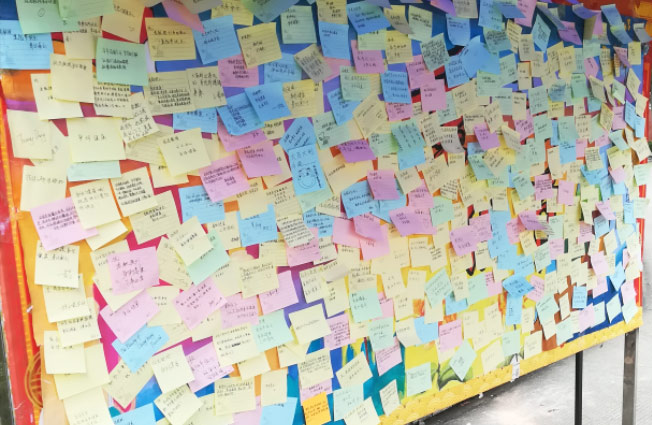 重阳节期间,机电学部还在一饭门口水池旁摆摊,收集全校学子对老教授的祝福。在活动结束后,将这些祝福贴在记事本上,连同与老教授的合照一起送给老教授留作纪念。