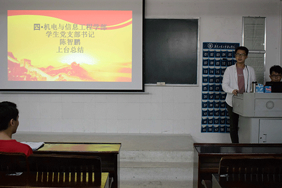 为引导和鼓励广大学生党员增强政治意识,讲党性、讲原则、讲真话、讲实话,自觉地经受党内生活锻炼,不断增强党性修养。2018年10月23日下午6点,机电与信息工程学部学生党支部在第一号教学楼301多媒体课室开展了以“批评与自我批评”为主题的组织生活。与会人员有机电与信息工程学部学生党支部书记陈智鹏、在校学生党员以及党务秘书。