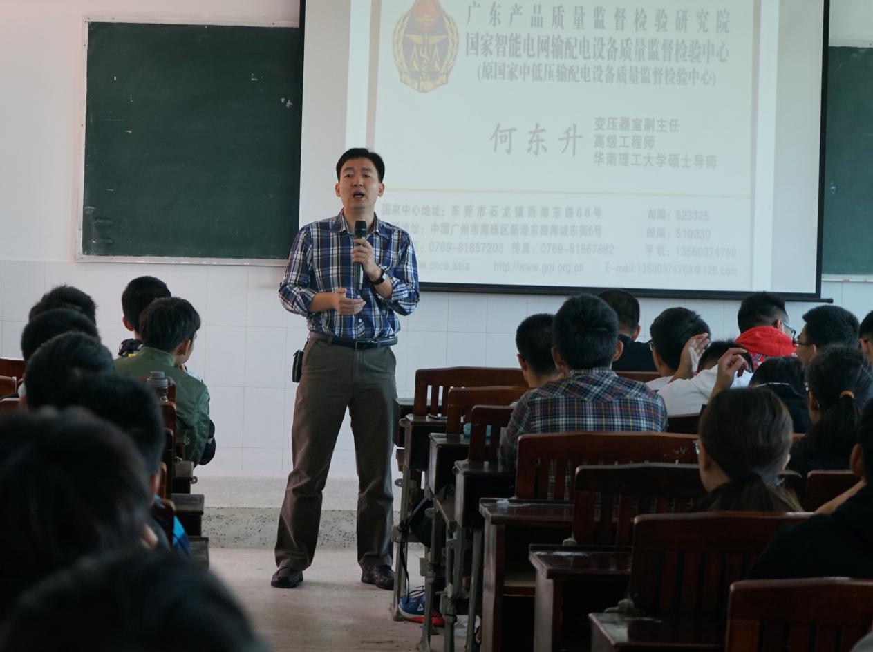 机电与信息工程学部于2018年10月29日上午9:00在1号楼406教室召开了基于物联网及云服务的电力设备全智能检测技术专题讲座,由高级工程师何东升担任此次讲座的主讲人,何工程师主要以人工智能的发展趋势以及如何带着问题去学校等方面进行了演讲。
