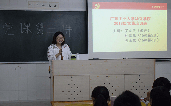 为了加强学生对党的认知,提高学生的党性修养,2018年10月30日晚,在学院党委的统一安排下,机电与信息工程学部于一号教学楼进行了党课第二讲活动,由18级辅导员罗文雯老师和在校学生党员为大一新生进行授课。