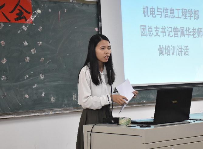 2018年11月14号下午5点40分在3-309机电与信息工程学部召开第一次干事培训大会,本次出席的嘉宾有团总支书记曾佩华老师、机电学部辅导员林凯鑫老师以及机电学生会主席团的成员。