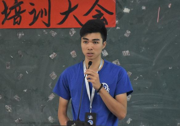 大会第四项主席团代表林幸光师兄发言,林幸光师兄针对曾佩华老师强调的学生会成员穿会服外出喝酒、吸烟等等不符合学生行为进行了强调并严重声明这件事情的严重性和后果。