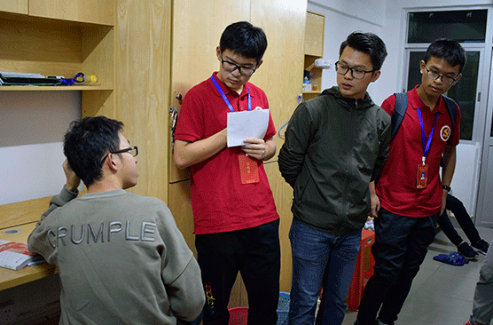 为了更加了解新生在党员带动下的适应情况以及生活状态,贯彻落实以优带新,齐头并进的发展方针,2018年11月28日,机电与信息工程学部学生党支部书记陈智鹏,18级辅导员张涵和党务秘书走访了部分在校学生党员宿舍。