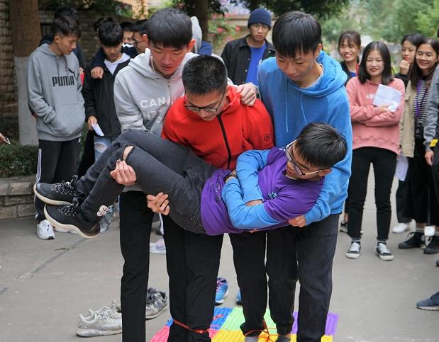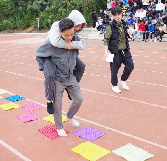 而每一项游戏都是需要组员们互相配合且互相鼓励,游戏过程中组员们互相认识,互相了解,更加有利于提升学生会的团结精神,游戏通过得分情况来排名,且前三名有奖励而最后三名就有惩罚。惩罚是每组的成员互相背着组员走指压板。
