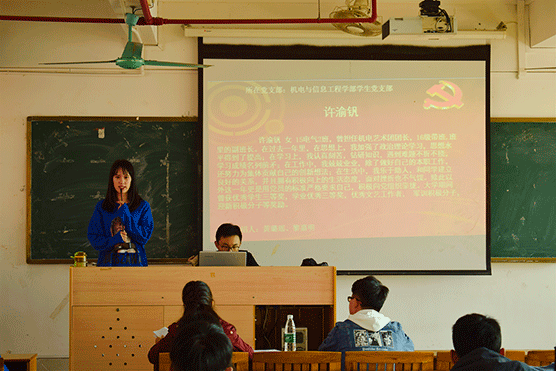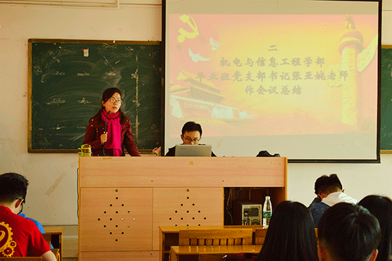 2018年12月21日,机电与信息工程学部毕业班党支部于5号楼608召开2018年下半年毕业班转正大会,出席本次会议的嘉宾是机电与信息工程学部毕业班党支部书记张亚婉老师。