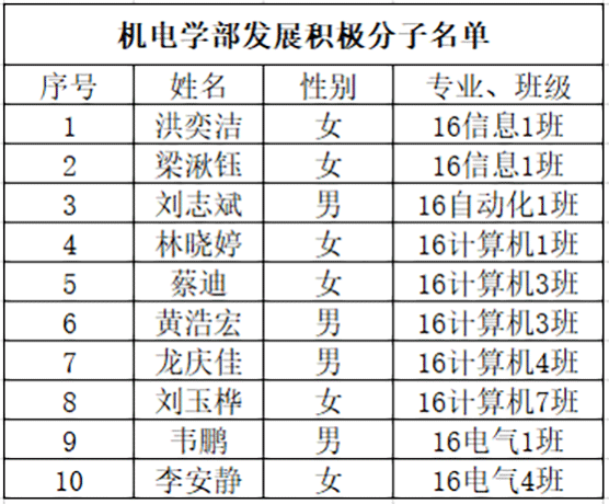 机电与信息工程学部第三期发展培训班成员名单公示!