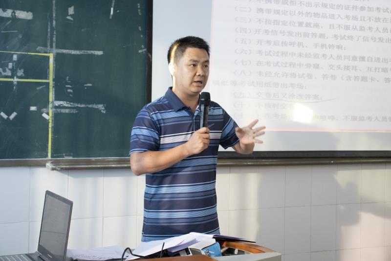 大会第四项是谢太义主任致辞,谢太义主任再次强调了考试违纪后果的严重性,希望同学们能诚实做人、诚信考试,考出自己的真实水平,杜绝考试违纪和作弊行为。