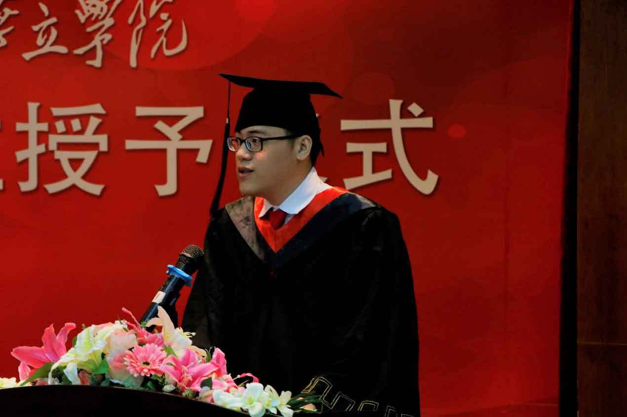 在讲话完毕后,由华立学院副院长郭颂平教授宣读授予学位的决定,并进行由教授进行表彰。