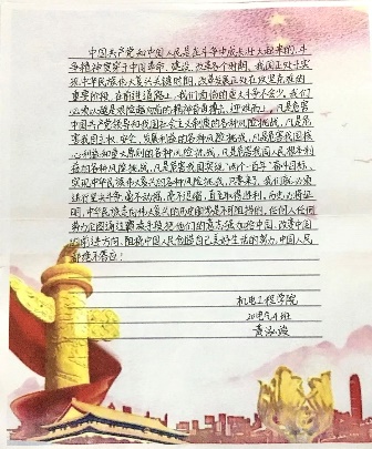 为扎实开展“喜迎二十大,同心写未来”主题活动,推动广大党员干部认真读原著、学原文、悟原理,发动党员同志、入党积极分子学习阅读《习近平谈治国理政》第四卷,掌握党的政策理论,了解形式动态与国情,学习先进经验。在学习党的进程的同时,丰富自身的涵养,做到学党、悟党、跟党。为积极推进学习型党组织,进一步激发党员干部与群众的热情,营造浓厚的学习氛围,同时进一步鼓舞激励广大党员与群众学习理论知识。机电工程学院党总支开展“喜迎二十大,同心写未来”手抄原著的系列活动。