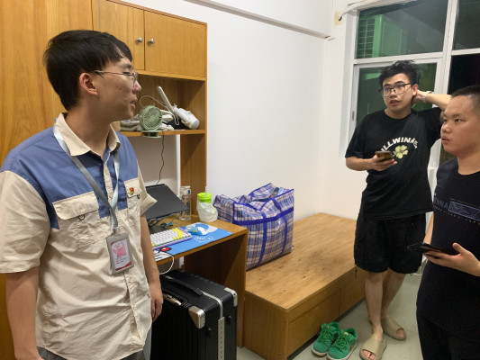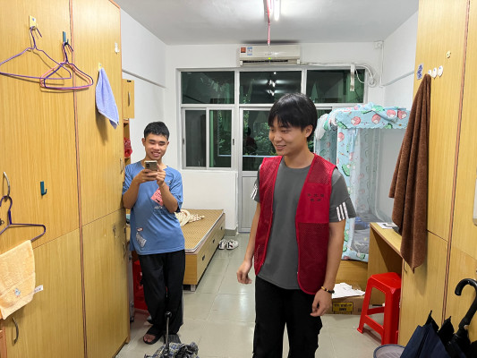 为全面了解新生入学入住宿舍情况,帮助新生更好适应宿舍环境,2023年9月2日,机电工程学院学生党支部书记梁标老师、团总支书记吴焕通老师对从江门校区回来的同学及专升本新生的宿舍进行了走访。