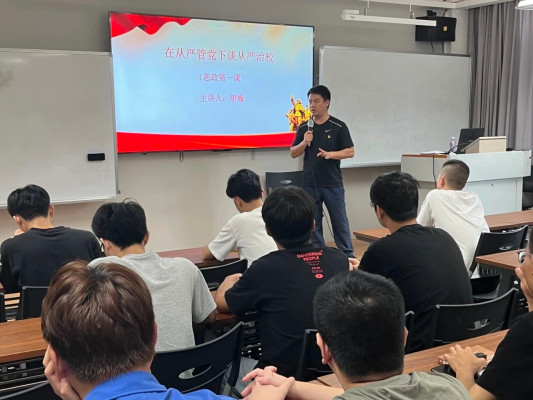 为了进一步推进全面从严治党,加强党风、学风、班风建设,强化思政育人实效,2023年9月20日,机电工程学院党总支书记唐巍围绕“在从严管党下谈从严治校”主题在4号楼705教室为机电工程学院党务干部、入党积极分子和学生代表讲授“思政第一课”。