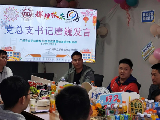 在建校25周年之际,为了共庆母校华诞,共谋未来发展,共话校友情谊,2024年11月30日,广州华立学院建校25周年暨机电工程学院校友荣归母校座谈会在广州校区四号教学楼808会议室顺利举行。机电工程学院党总支书记唐巍、副书记曾宏锦、师生代表等,与返校校友们欢聚一堂,重温师生情谊,分享成功经验。