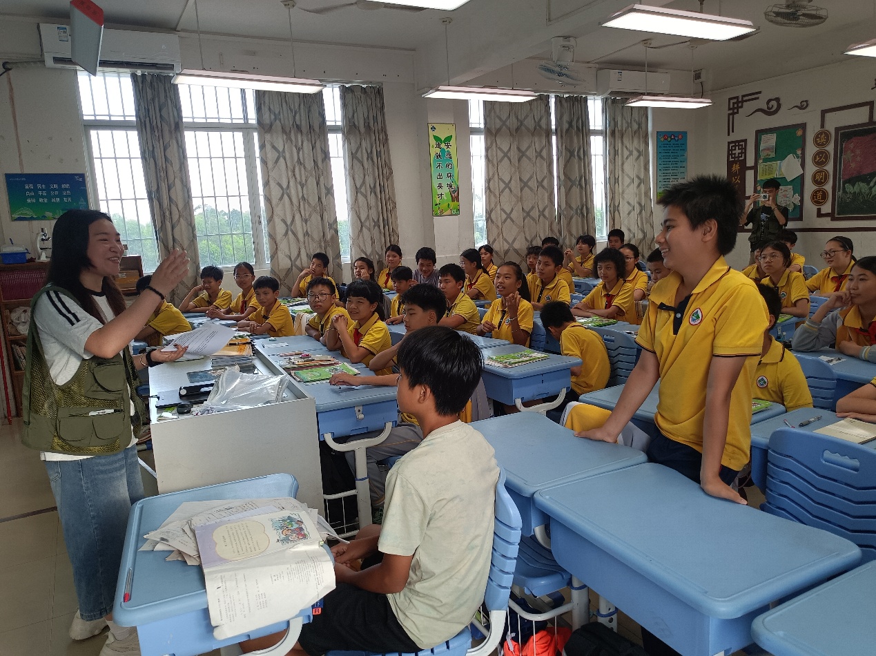本次义讲活动由青年志愿团精心策划,旨在弘扬地方文化,增强小学生们对五邑传统文化的认知与兴趣。活动中,志愿团干部通过图文展示和故事讲述的形式,向田边小学的同学们介绍了五邑地区的特色建筑、饮食、民俗及传统技艺等特色文化。在主要环节中,志愿者们以通俗易懂的语言,结合趣味互动,带领小学生们领略了五邑侨乡的历史底蕴。
