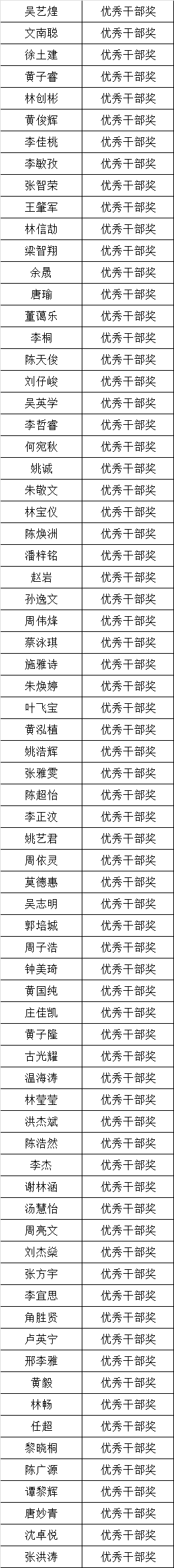 三、优秀学生干部奖