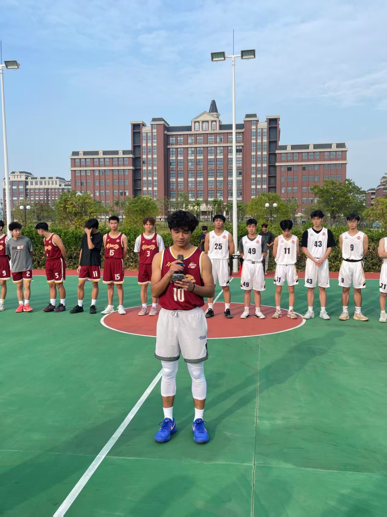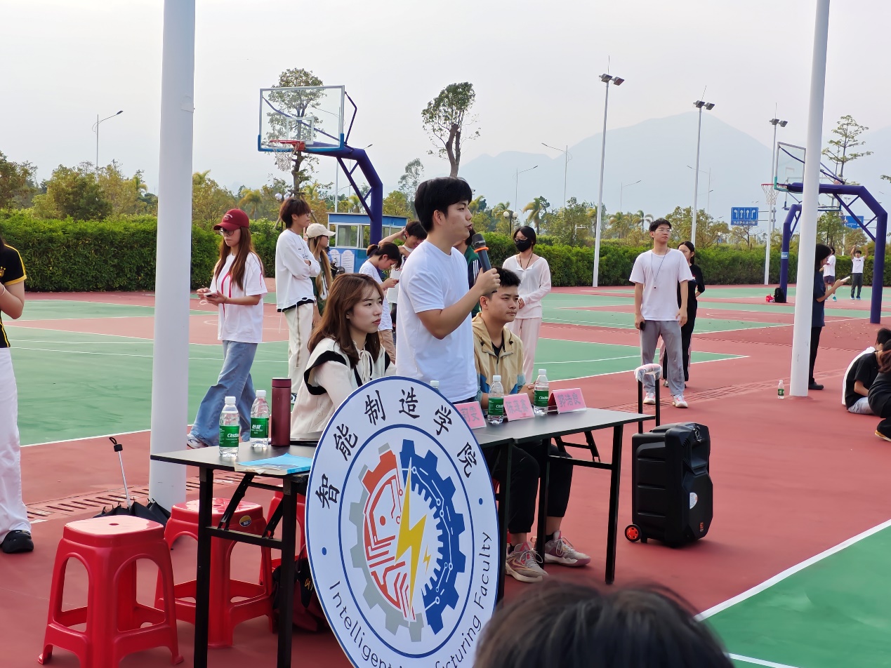 在篮球赛的场边,智能制造学院的院徽在阳光下熠熠生辉。陈蓬鑫书记强调:“友谊第一,比赛第二!”他希望通过本次院级篮球赛,增强学院的凝聚力,让同学们在竞技中收获团结与成长。
