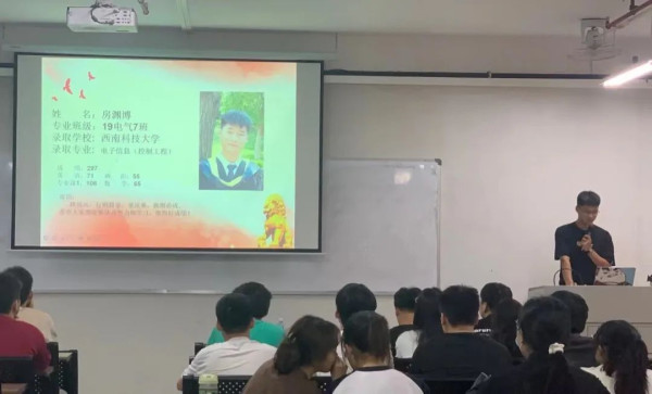 房渊博师兄为西南科技大学的电子信息(控制工程)专业所录取。师兄重点分享了考前的准备工作及学习英语和政治的经验,鼓励大家要相信自己,总结了四个词:能力+毅力+心态+运气。