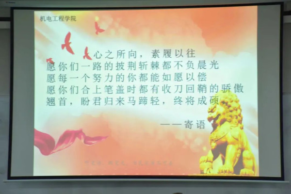 在分享会开始前,先由机电工程学院党总支副书记曾宏锦老师为大家进行考研动员,介绍了考研的现状,接着向大家介绍了到会的各位老师及四位考研上岸的师兄,并宣布本次考研经验分享会正式开始。