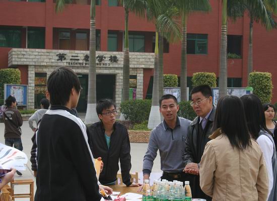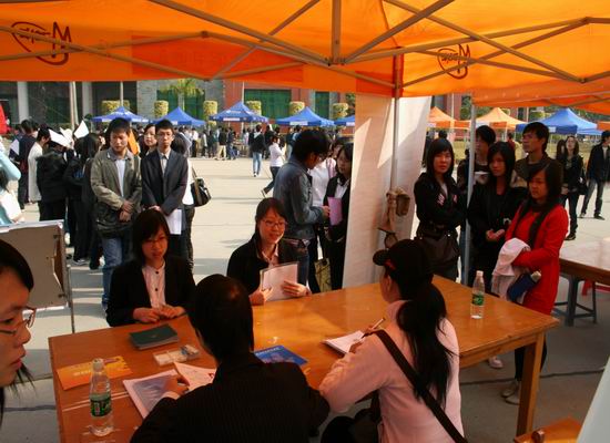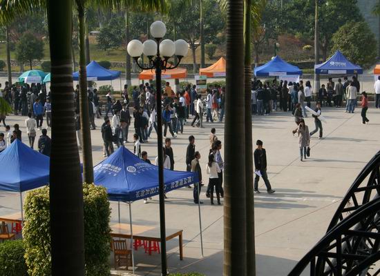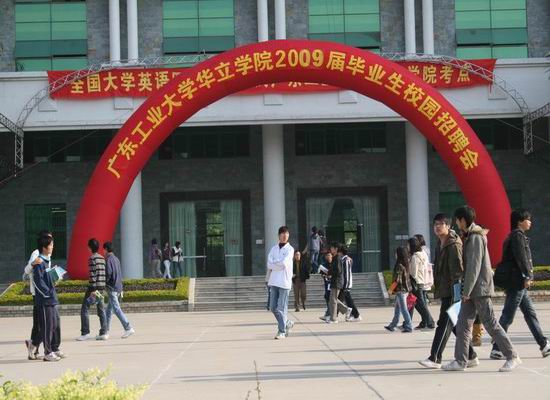 为了积极应对当前的就业寒冬,为毕业生创造更多的就业机会,12月19日早上九点至下午一点,由广东工业大学华立学院就业指导中心主办,学院就业促进协会协办的2009届毕业生校园招聘会在综合楼广场隆重举行。来自广州、深圳、东莞、佛山等地的三十多家企业参加了此次招聘会。整场招聘会被前来应聘和咨询的学生挤得水泄不通,场面十分热烈。广州华立投资有限公司领导赵总、广东工业大学华立学院常务副院长詹业宏、党委书记胡志先、各学部部长、书记亲临了现场指导。