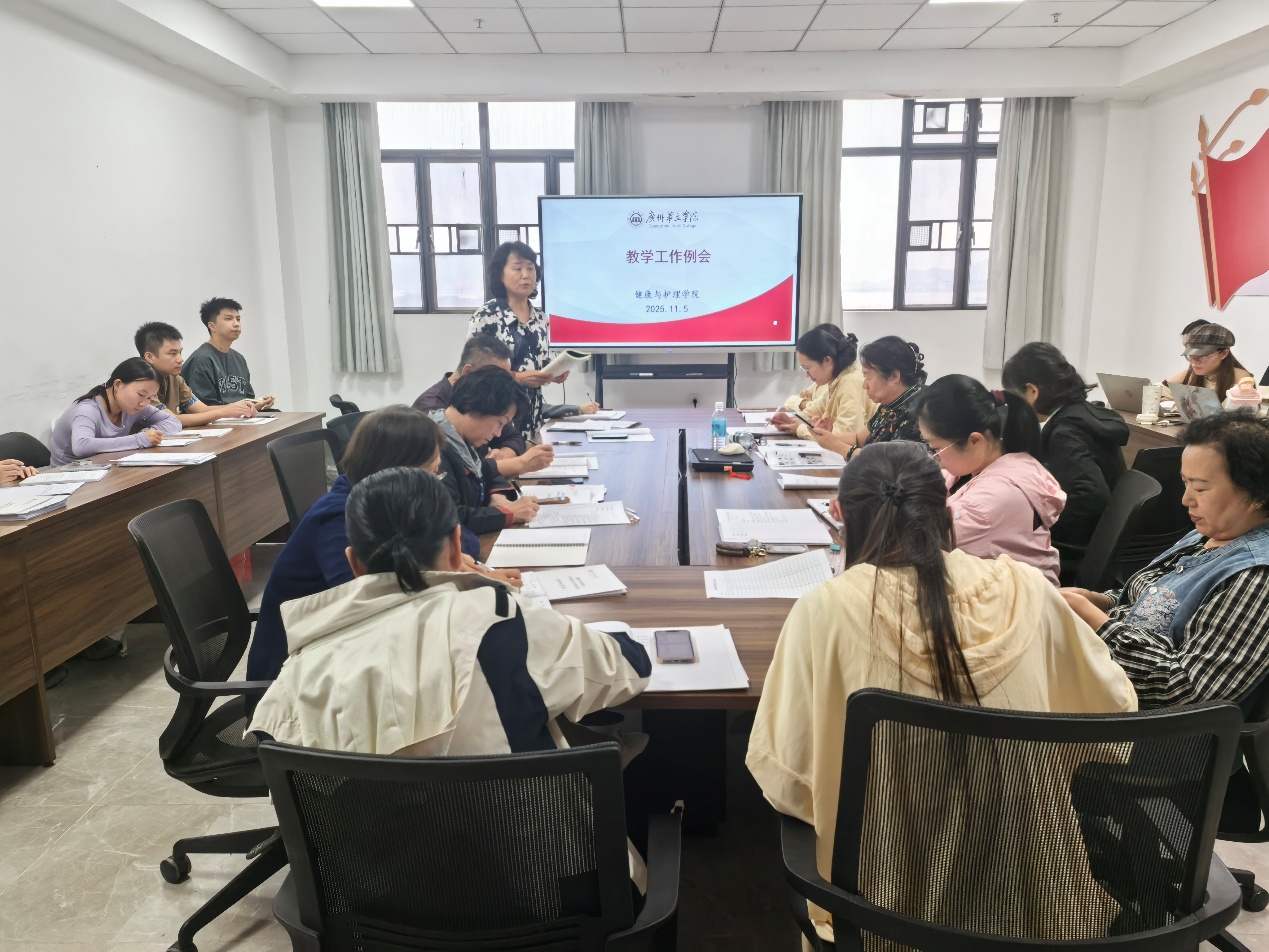 为扎实推进本科教学合格评估准备工作,加强教学管理,促进教学工作的有序开展,2025年11月5日下午16:00,健康与护理学院在2教805召开合格评估推进会兼教学工作例会。学院院长赵军教授主持会议,全体教职工参会。
