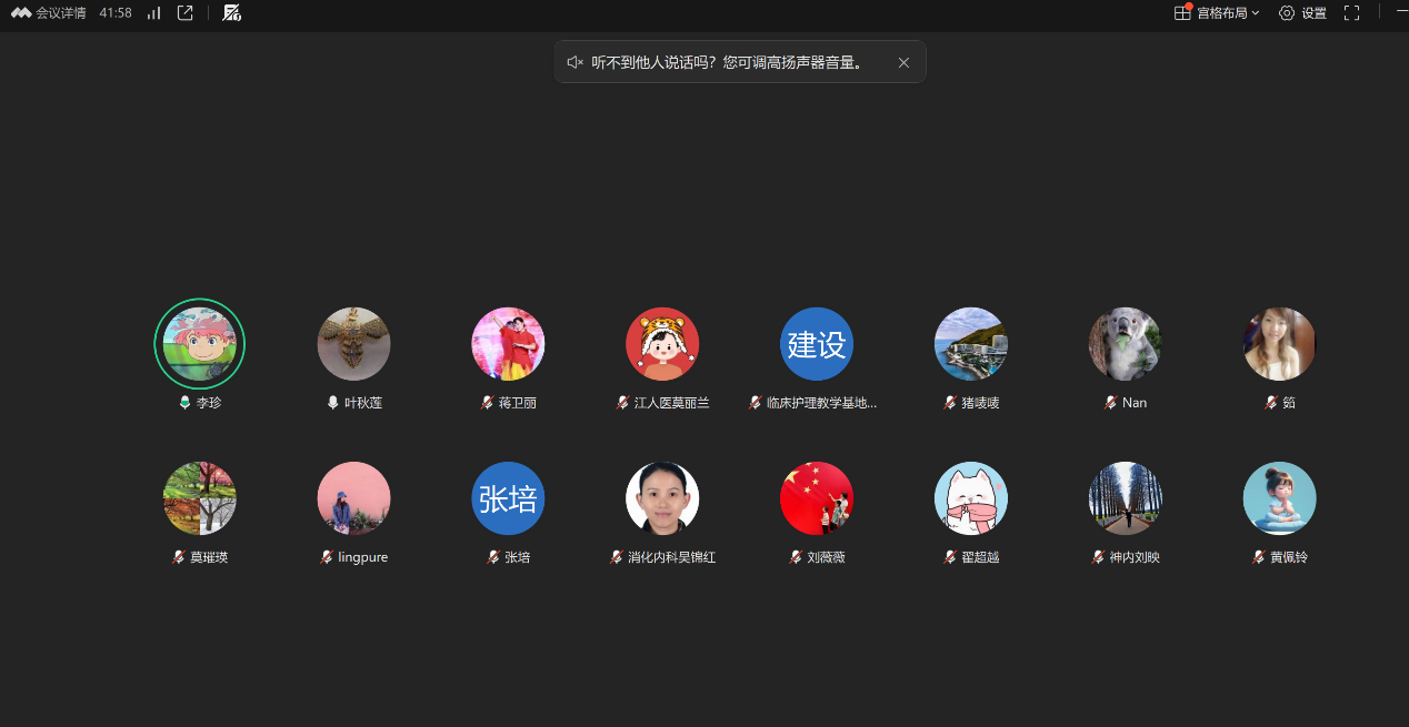 江门市中心医院、遵义医科大学附属第五(珠海)医院、佛山市第一人民医院、江门市人民医院临床兼职老师线上参会(截图)