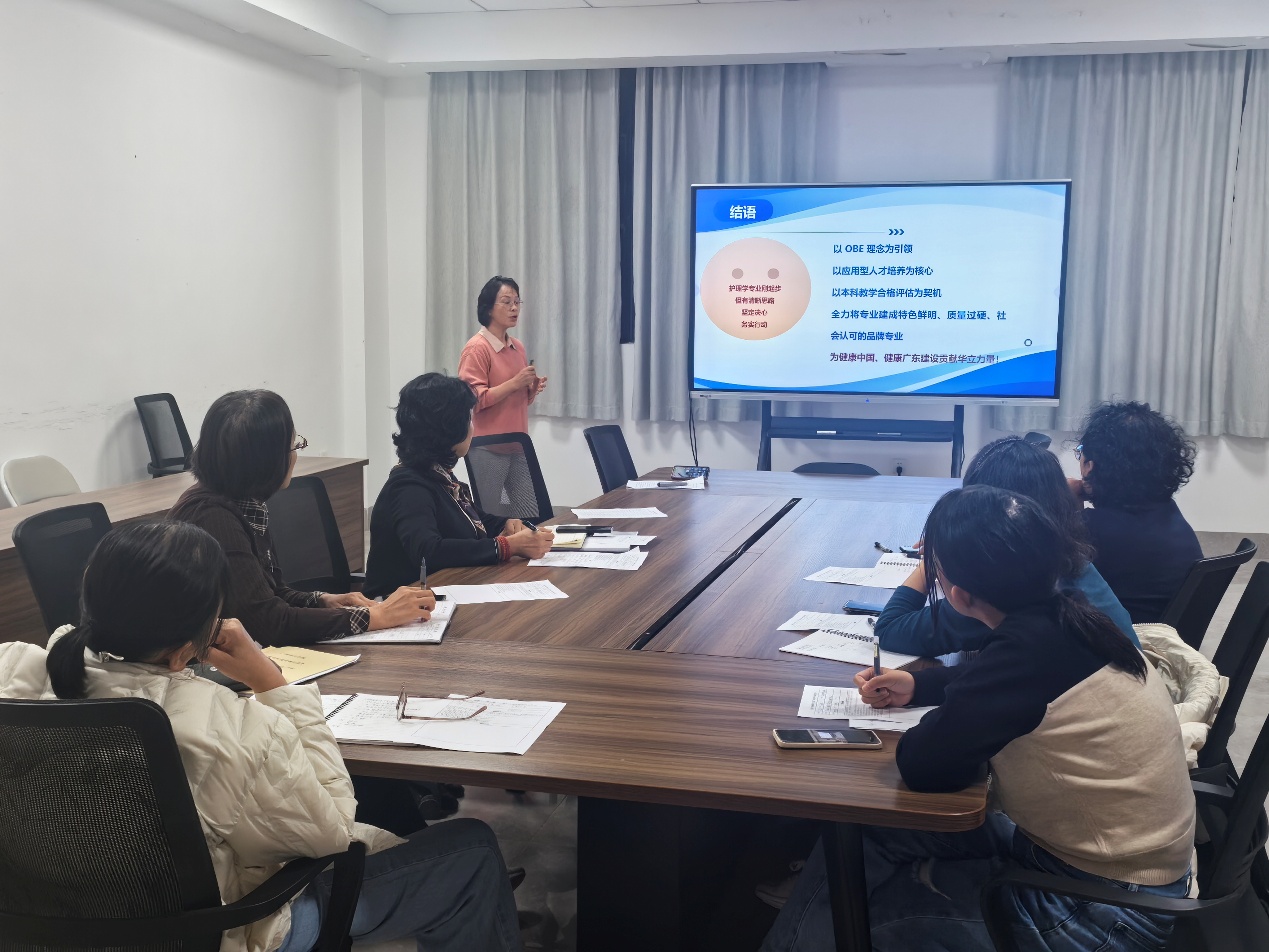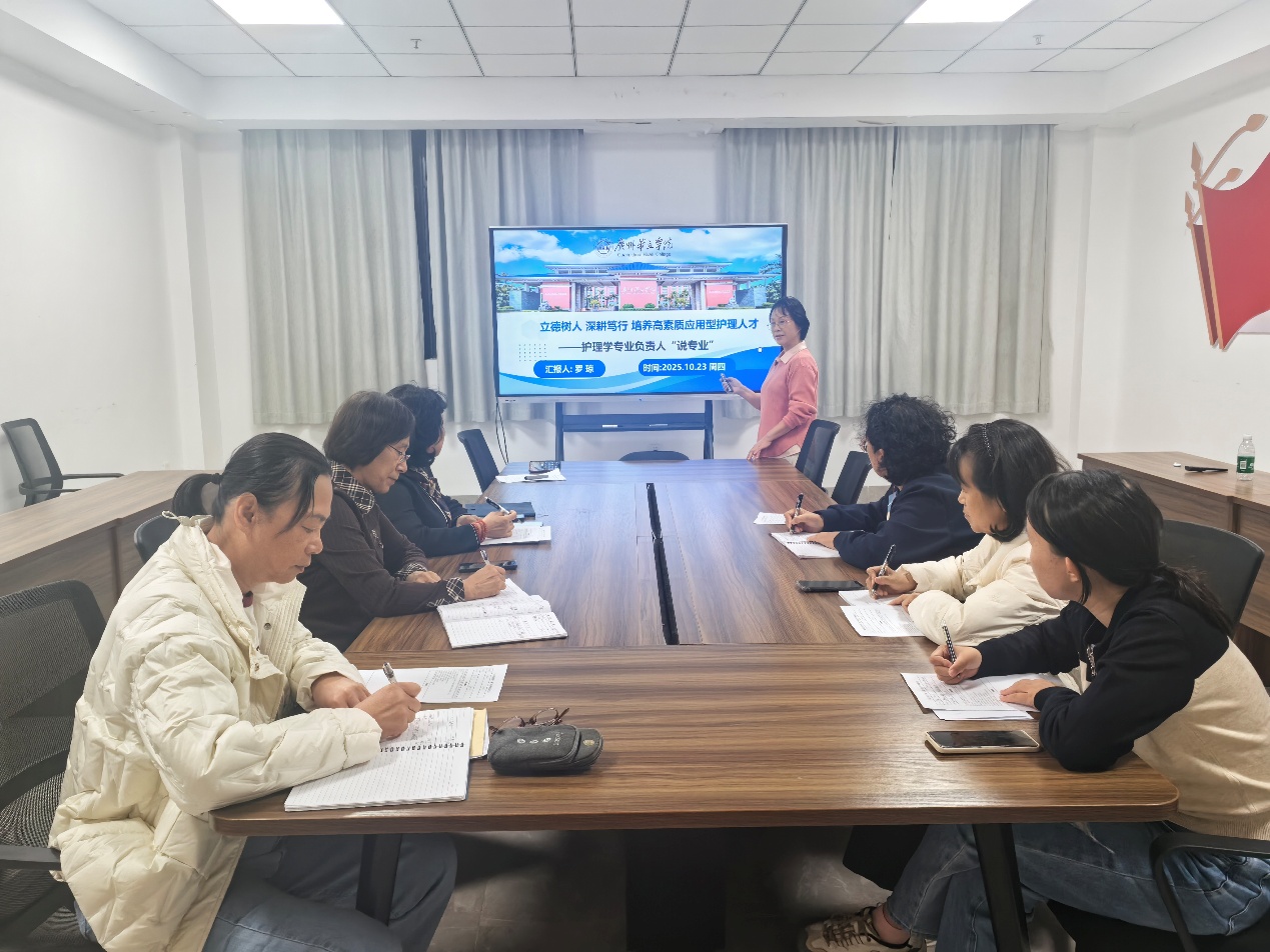 2025年10月23日晚19:00,健康与护理学院于2教805会议室成功举办专业负责人说“专业”汇报专场活动。本次活动以“说”促评建,旨在深化专业内涵建设、提升教学质量,全面梳理护理学专业课程与教学环节的建设情况,进一步厘清专业发展思路,凝练办学特色。