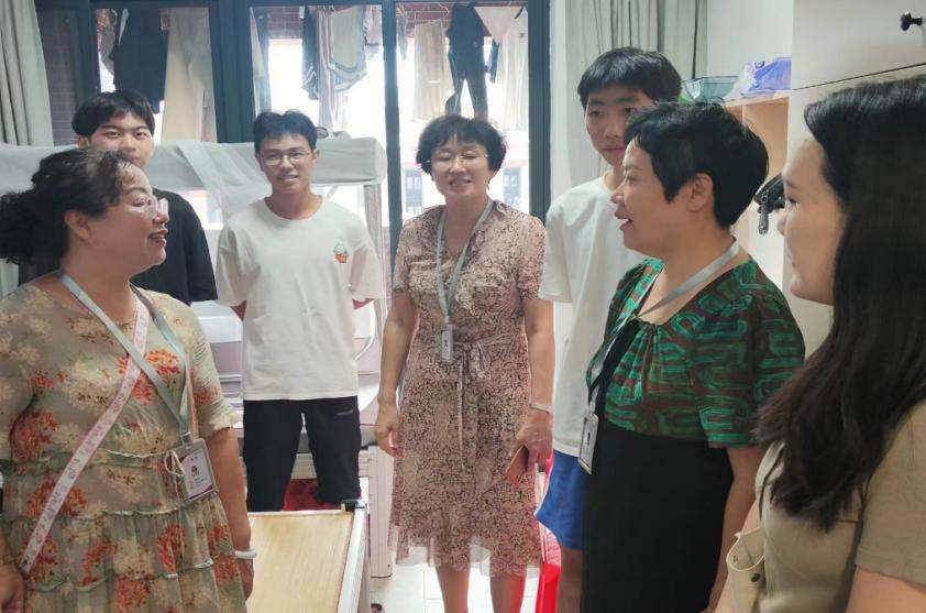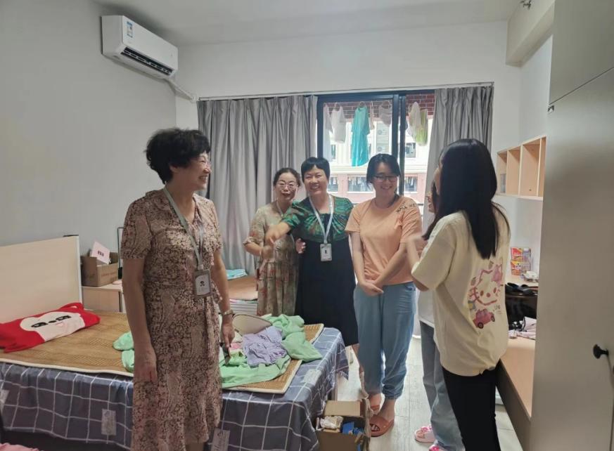9月5日,院长杨立群教授、副院长隋树杰教授、系主任郭丽梅副教授、班主任杨琪、古淑辉、夏炎艳、高达程、刘丽云、张晓波、辅导员吴皓琳和宋夏彤前往A9和A10宿舍走访看望新生,详细询问同学们报到、入住和适应等情况,嘱托新生要尽快适应大学生活,打好专业基础,遇到生活和学习上的问题和困难要及时向辅导员和班主任沟通反馈和寻求帮助。领导和老师还解答了新生对学业的问题和困惑,现场氛围良好。新生也纷纷表示了对大学生活的向往和憧憬,并且会努力学习,享受大学生活。