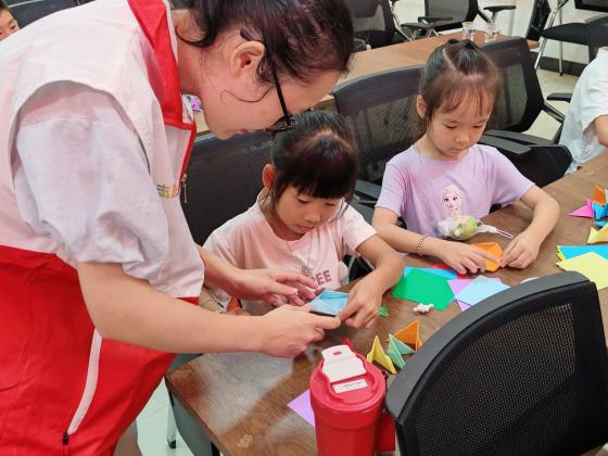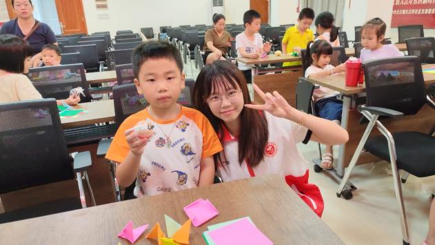 7月23日,创意手工《折纸王冠》欢乐开讲。折叠、拼接、装饰的每一个步骤都巧妙融入几何知识:量角、对边、对称,孩子们在动手间悄然完成空间思维启蒙。当一顶顶“数学王冠”戴在头上,小小T台瞬间亮起聚光灯,家长掌声盖过蝉鸣,知识与自信一同在稻田边生根发芽。
