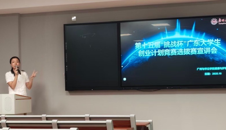 为激发创新创业热情,提升学生科技创新能力,助力学子在第十五届“挑战杯”广东大学生创业计划竞赛广州华立学院校内选拔赛中再创新绩,我院学工办于2025年10月16日在二教601教室开展第十五届“挑战杯”广东大学生创业计划竞赛广州华立学院校内选拔赛线下宣讲会。辅导员张丽芳老师以及健康与护理学院学生代表出席本次宣讲会。
