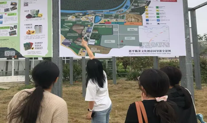 ▲梁静娴老师带领我们参观簕菜创意园并讲解其发展历程,图中着白衣为梁静娴老师