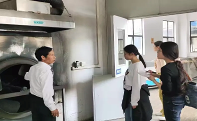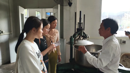 ▲李雪壮老师带领参观簕菜茶生产车间