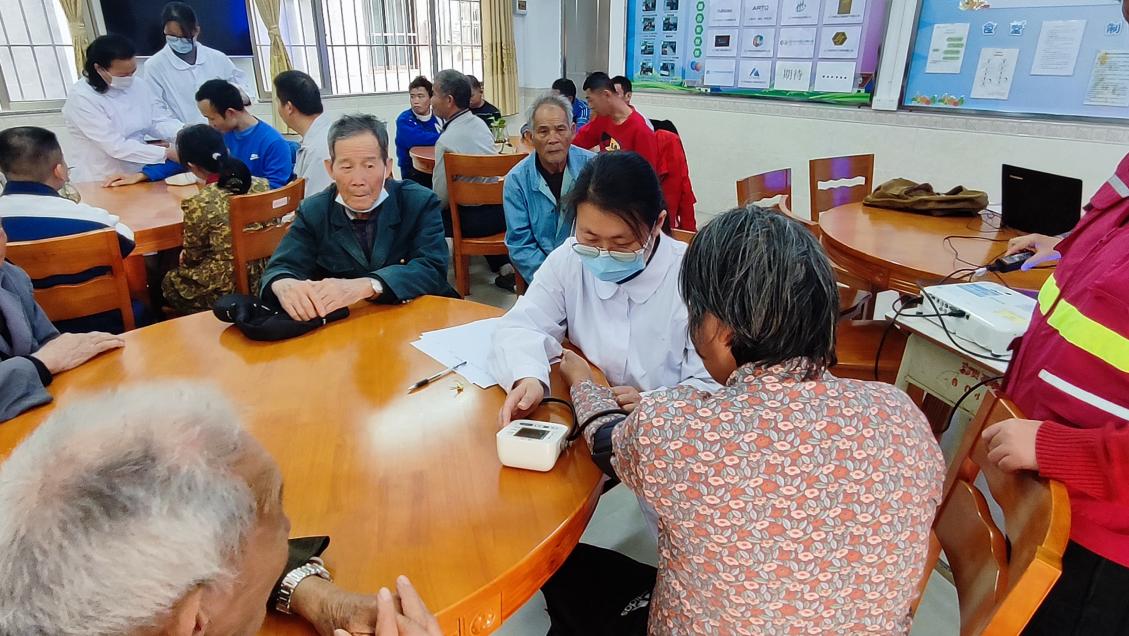活动最后,全体师生共同为老人们测量血压和记录脉搏测量值并且针对各位老人的血压情况及潜在健康问题给出个性化建议。