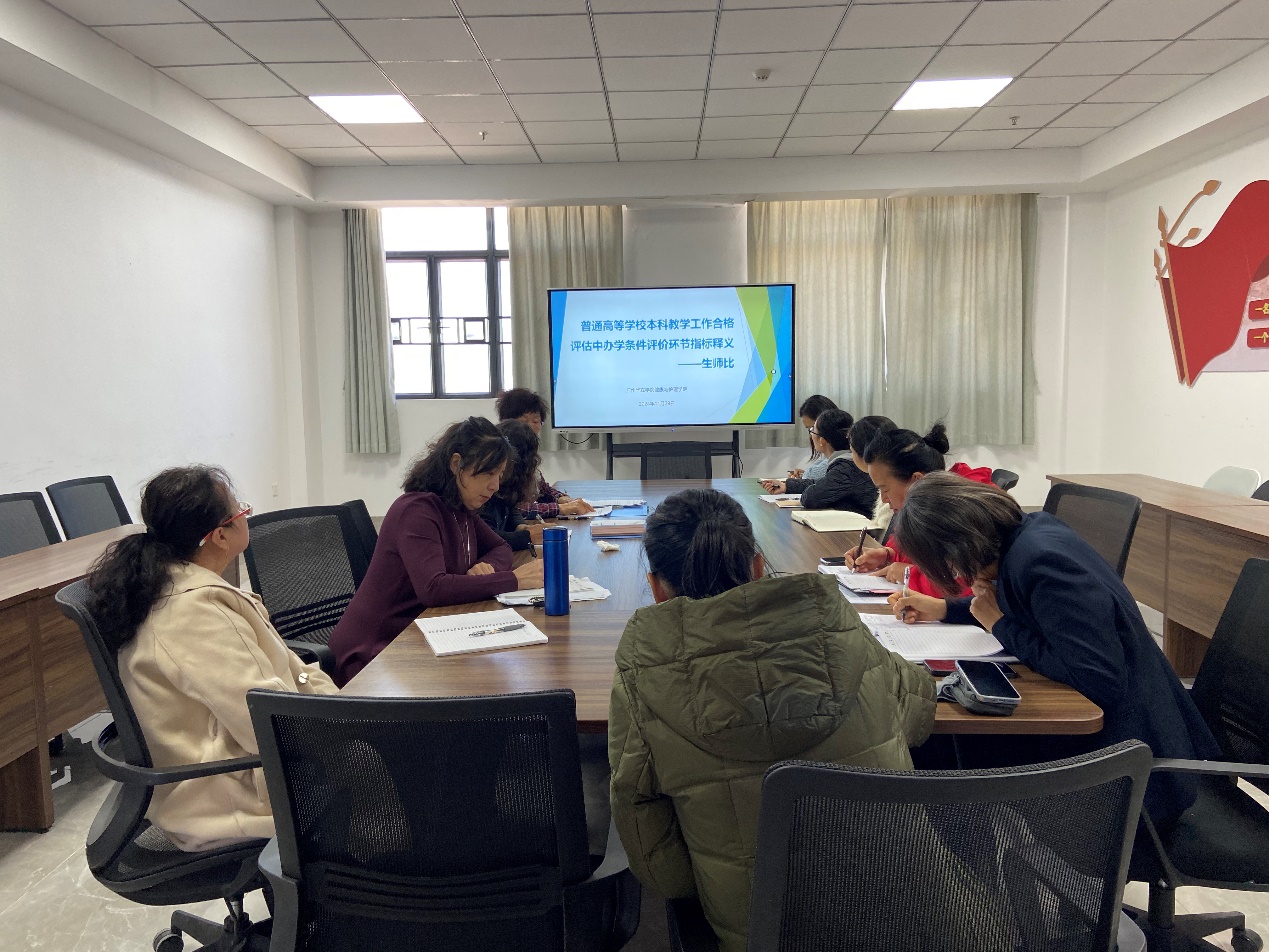 为进一步推动本科教学工作合格评估顺利进行,11月29日上午10:00,健康与护理学院召开了以“普通高等学校本科教学工作合格评估中办学条件评价环节指标释义——生师比”为主题的专题学习会。本次会议由学院党委书记侯一枝主持,院长杨立群教授主讲,学院本科合格评建工作领导小组成员全体参会。
