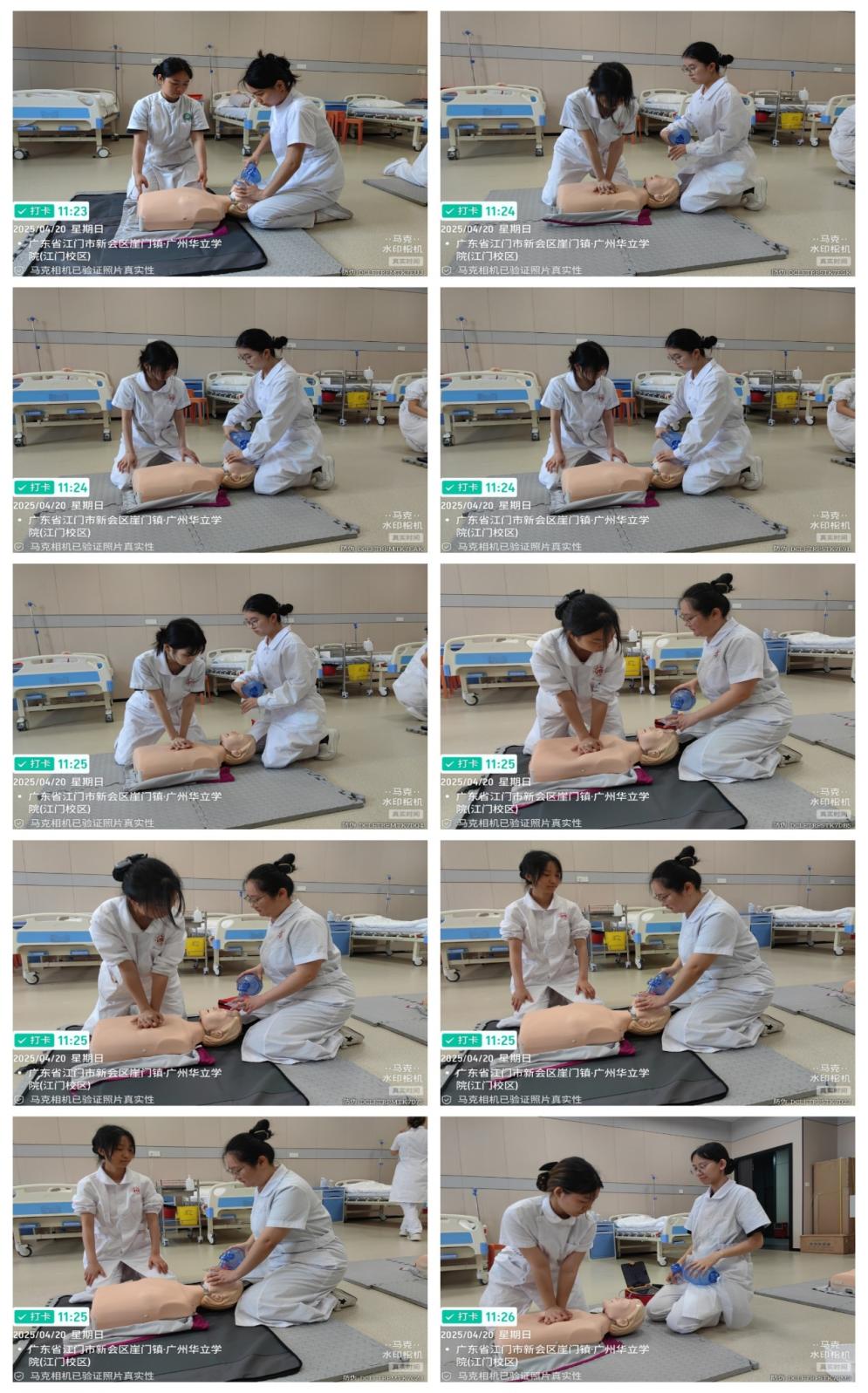 预赛中,选手们沉着冷静,熟练进行心肺复苏急救,充分展示了日常学习与自主训练的成果。2024级护理专升本的学生有100余人报名参赛,经过激烈的初赛选拔,共有20个团队脱颖而出进入决赛