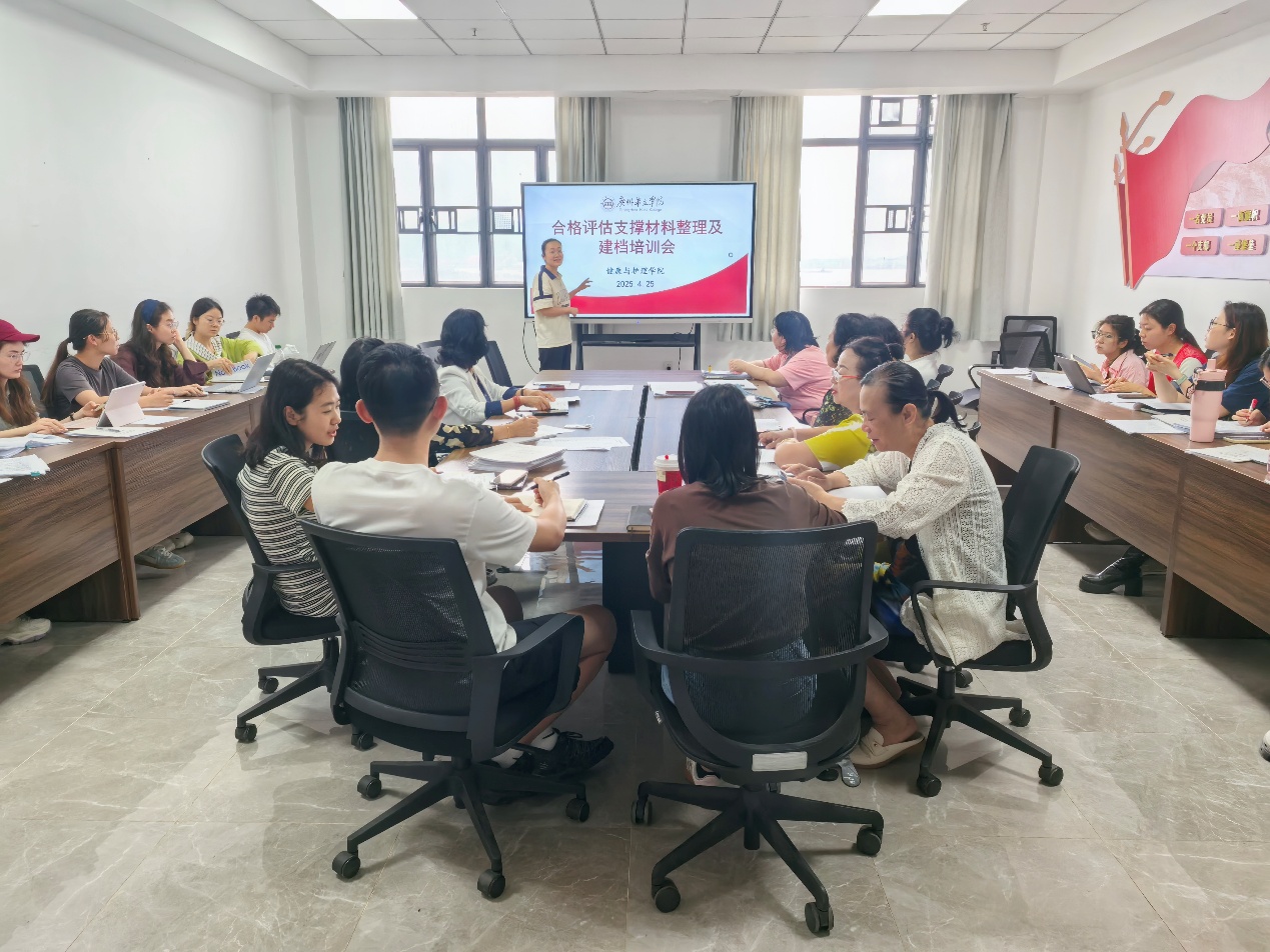 会议同步开展了合格评估支撑材料建档专题培训。李珍老师系统讲解纸质与电子材料的格式规范、分类标准及立卷归档要求,重点强调材料收集的完整性和数据填报的准确性,为全体教职工规范开展评建工作提供标准化指引。