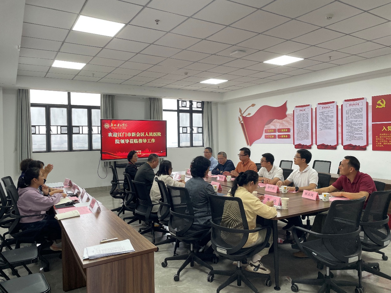会议伊始,赵军院长致欢迎词,对江门市新会区人民医院领导班子的到访表示热烈欢迎,并简要介绍了学院的办学理念与发展愿景。他表示,江门市新会区人民医院作为区域内优质医疗资源,在临床诊疗、科研创新和人才培养方面的优势显著,期待通过此次交流,推动双方在多领域建立长期稳定的合作关系,实现资源共享、互利共赢。