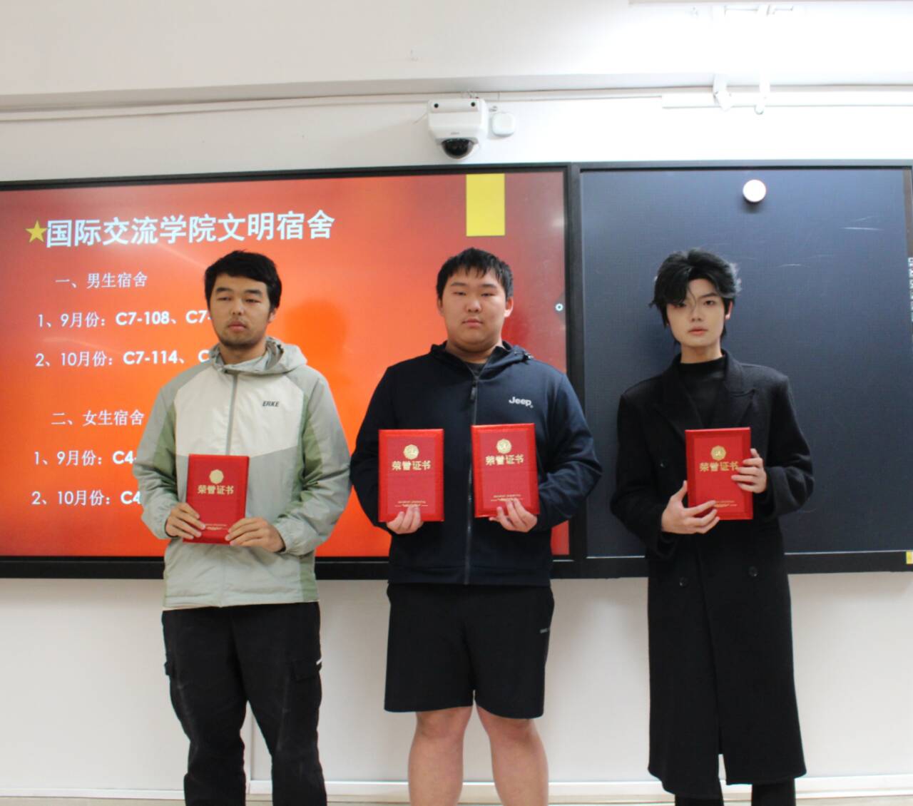 大会第四项为颁奖环节,共设立“学习之星”“进步之星”“文明宿舍”三大奖项,16名同学及7间宿舍获此殊荣。伴随欢快乐曲与热烈掌声,获奖同学精神抖擞地走上主席台,从贺华峰院长手中接过荣誉证书。