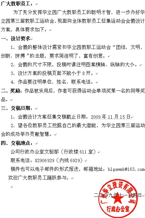 转发关于征集华立园第三届教职工运动会会徽设计方案的通知