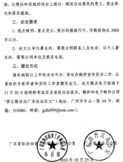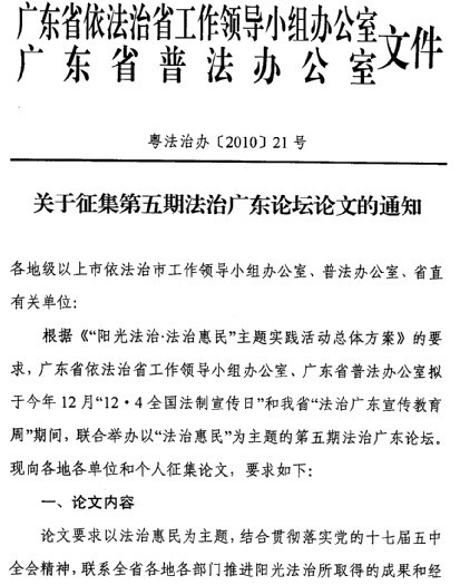 关于征集第五期法制广东论坛论文的通知