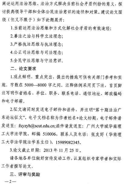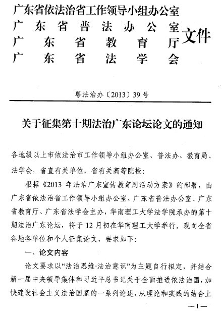 转发省普法办关于征集第十期法治广东论坛论文的通知