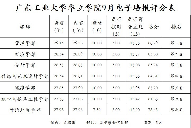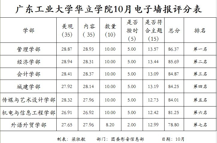 学院9月、10月份电子墙报评分结果