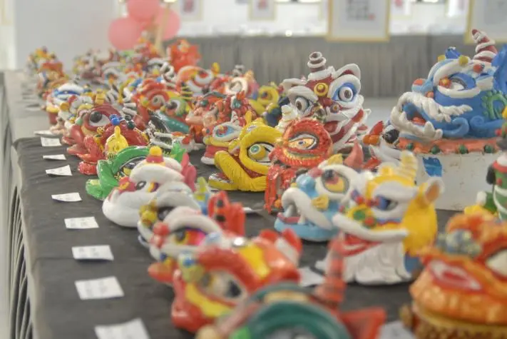 东方“醒狮”尽显威武和瑰丽。林瑞华主席、林颖书记、曾毅平院长驻足观看醒狮形态塑造,表示学生的动手能力强,突出了在“动”中展示专业能力,对教师的教学表示积极的肯定。