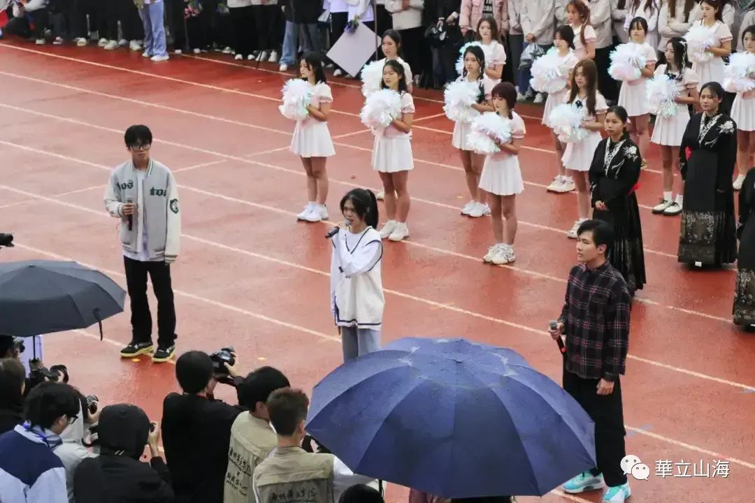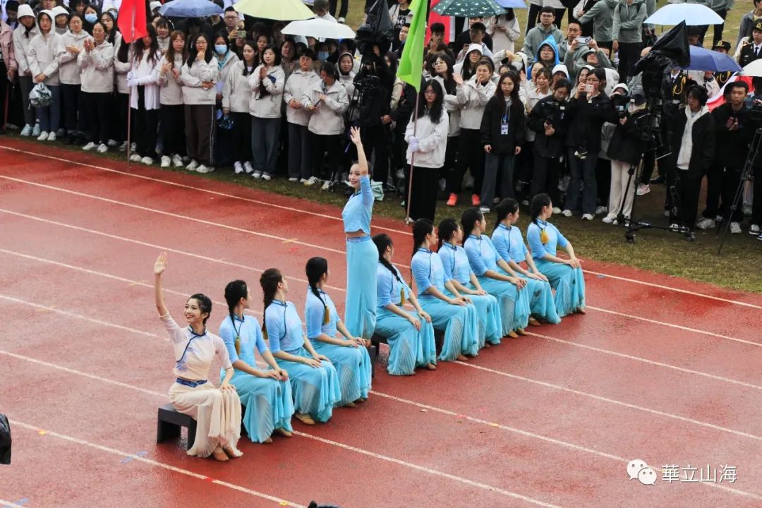 12月6日早晨八点,开幕式正式开始,全体师生无惧风雨,齐聚田径赛场,随后各方阵续徐徐进场。江门校区的方阵由智能科学与工程学院、健康与护理学院、教育学院的运动员、志愿者以及参赛老师所组成,队伍气势磅礴,整齐划一,在进入到会场后,江门校区的大旗从方阵队员的头顶上划过,随后方阵所有队员摆出“JM”字样,寓意江门。最后离场,给场上所有人都留下了深刻的印象。