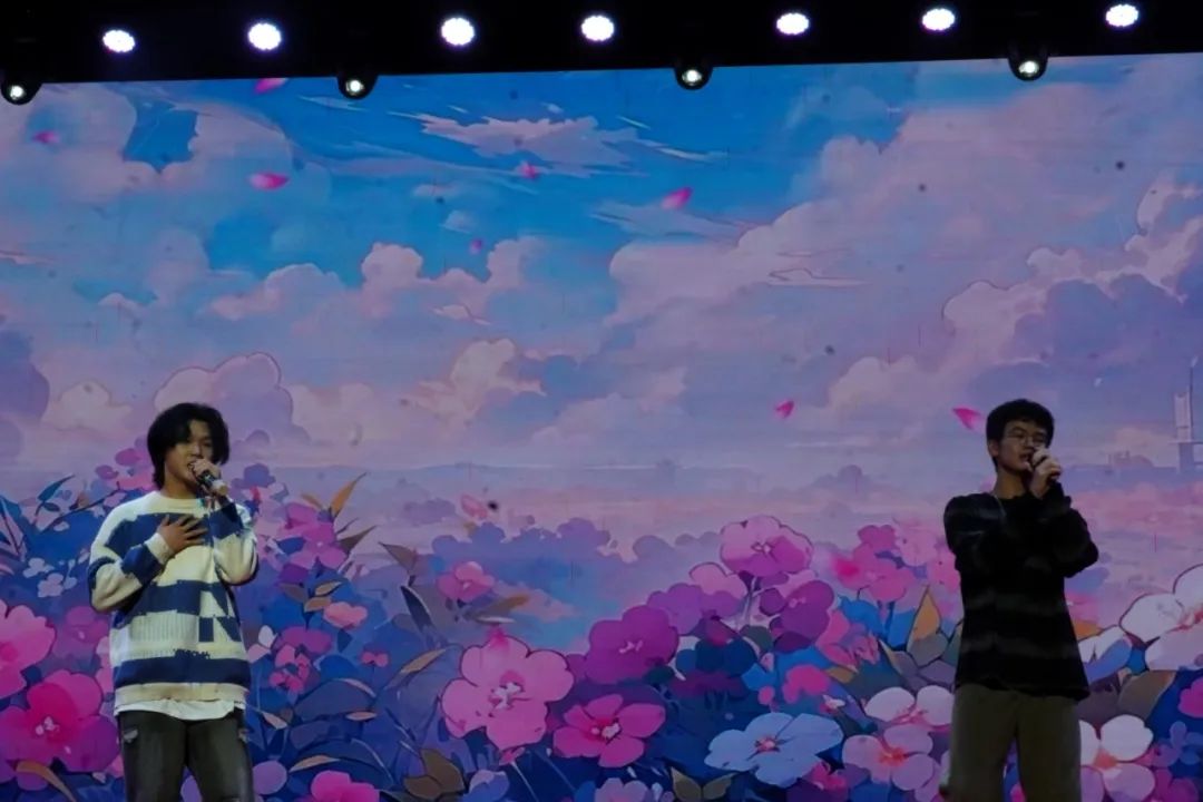 音乐会现场台上灯光闪烁、节目精彩不断,台下彩棒挥舞、一起互动呐喊。《说爱你》拉满互动效果,同学们与歌唱者一起击掌欢呼,瞬间将点燃了现场的热情。