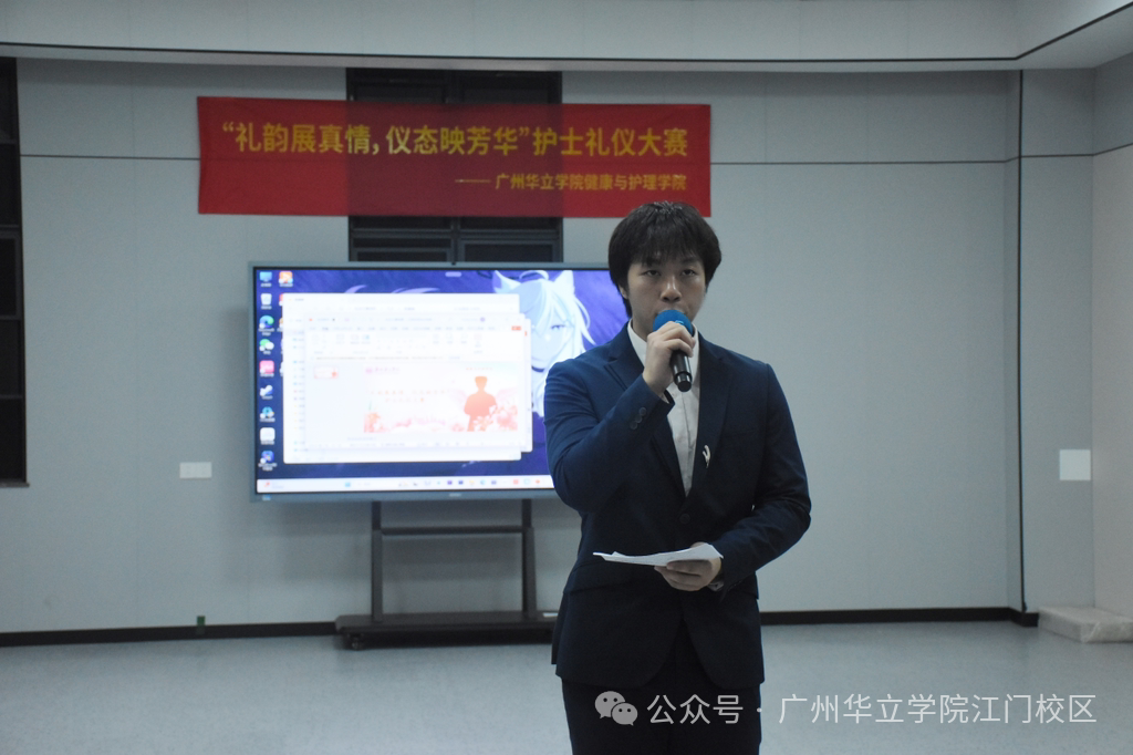 护士礼仪初赛在护理实训中心形体室火热开展,此次比赛由陈耿丞担任主持,并有幸邀请到许俊艳主任、李建恒学工办副主任、高达程老师、刘秋月老师作为参赛评委。