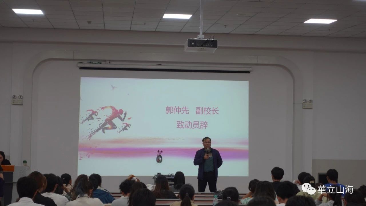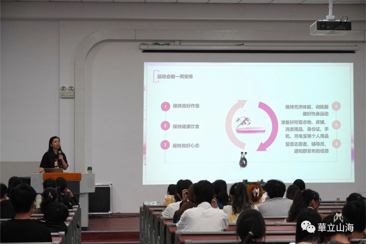 为迎接即将到来的运动会,充分调动运动员的积极性,确保各项工作能得到有序进行。11月30号下午,广州华立学院江门校区于二号报告厅举行运动会动员大会。会议由王斯琳老师主持,参会人员有副校长郭仲先、学生运动员和学生志愿者。