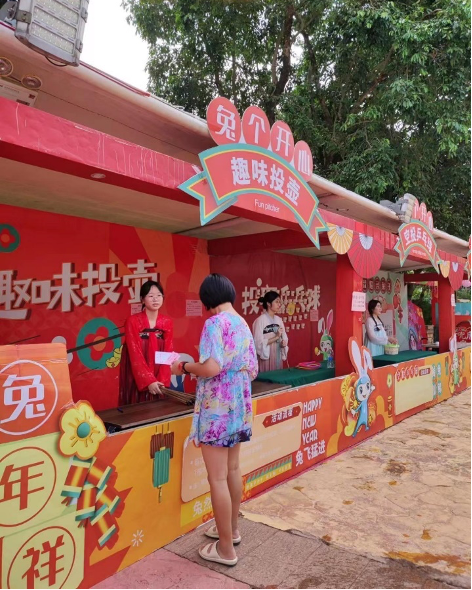 (我校学生在活动摊位主持游戏进行)