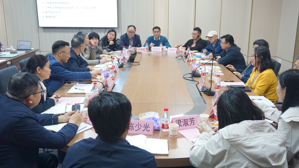 会议中,两校相互交流学习。在招生招工、教学管理、师资培训、学生实习、后勤服务等议题方面,我校为广州软件学院新校区的建设规划深入分享实践经验。会后,广州软件学院校领导和各职能部门分别与我校对口部门到现场考察和深度交流。