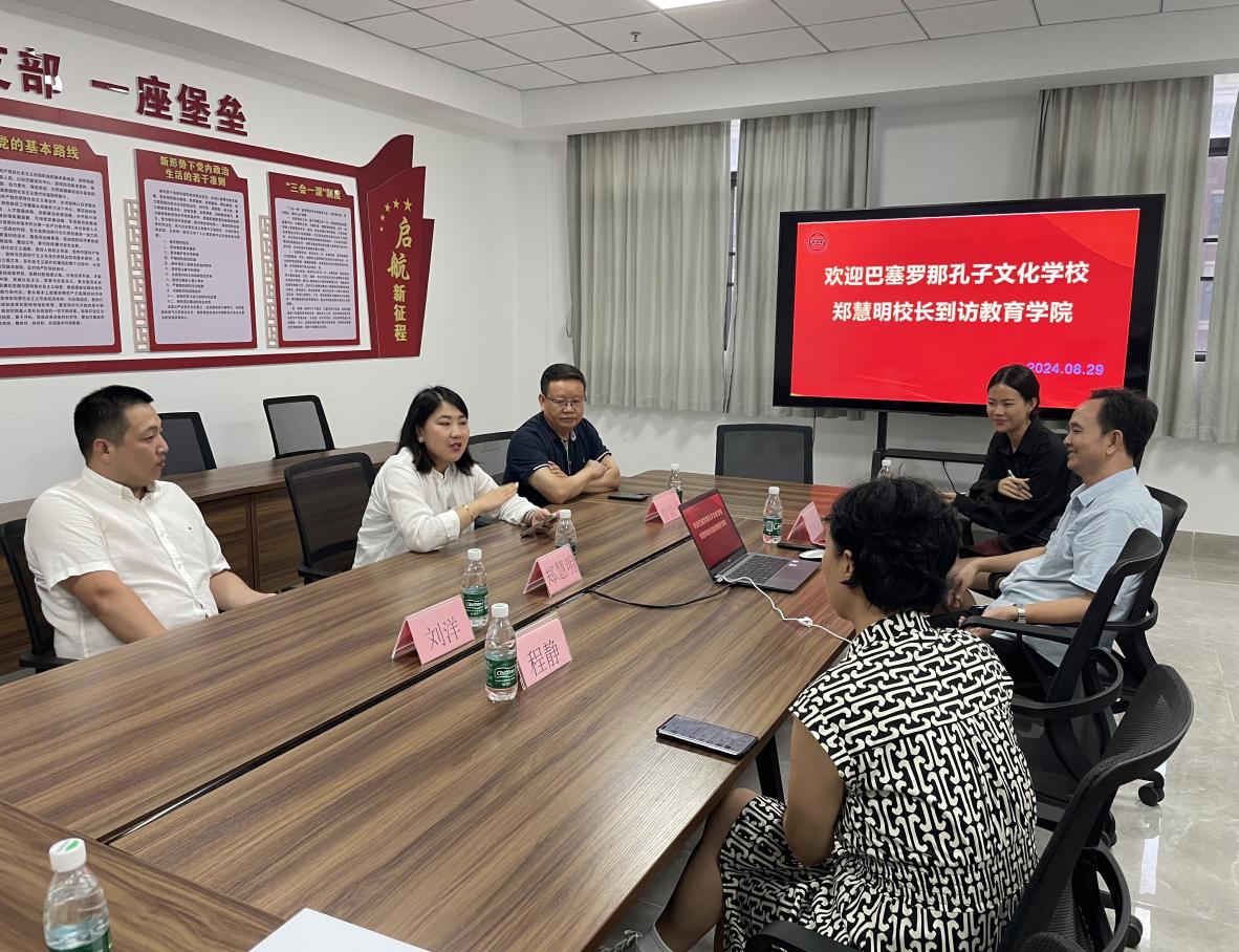 应我校教育学院邀请,西班牙巴塞罗那孔子文化学校教学校长郑慧明女士于2024年8月29日到访江门校区。李玉林副书记在校区行政办公楼会议室会见了客人。校区党政办李季霞主任、教育学院曾毅平院长等陪同会见。