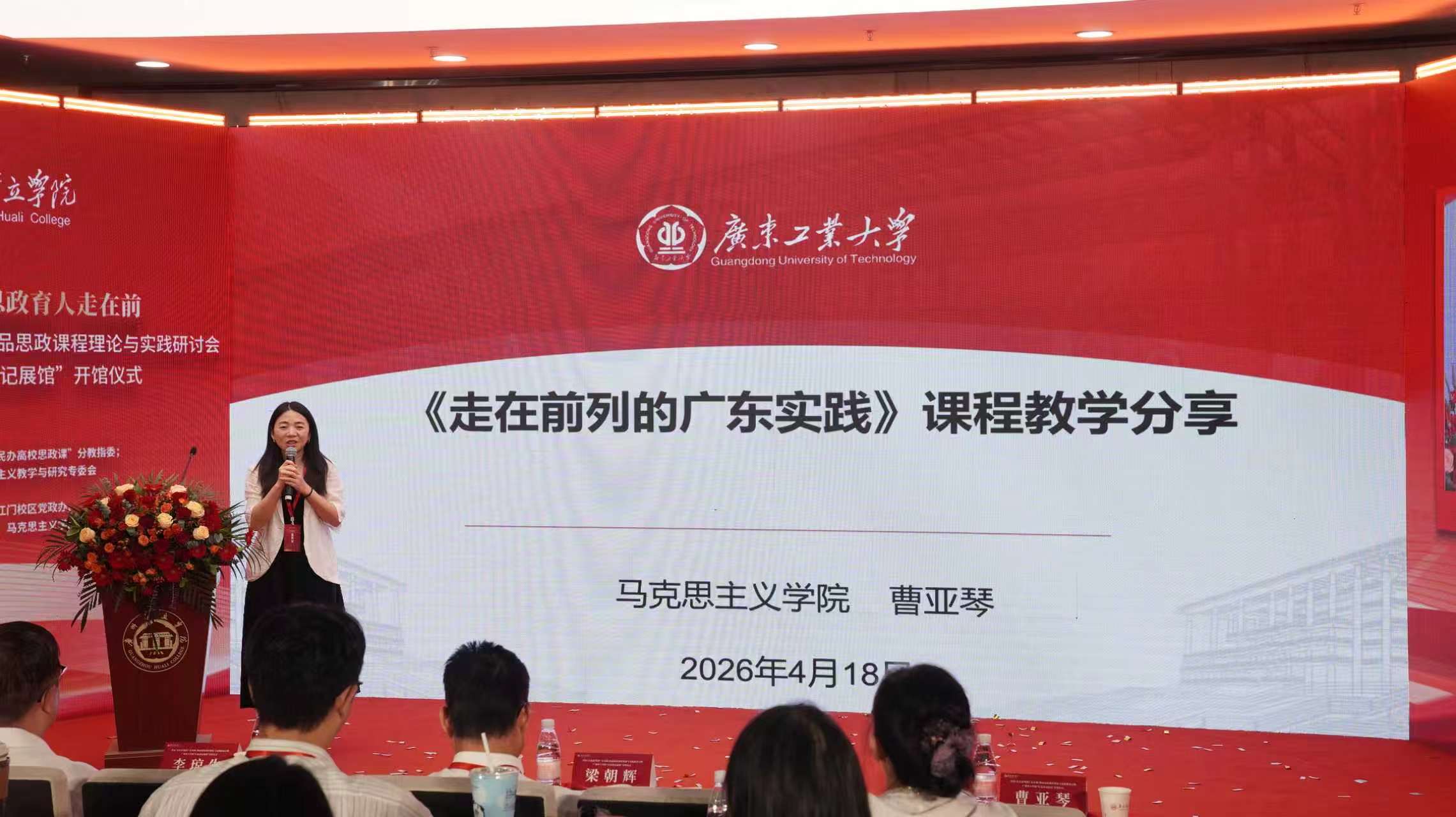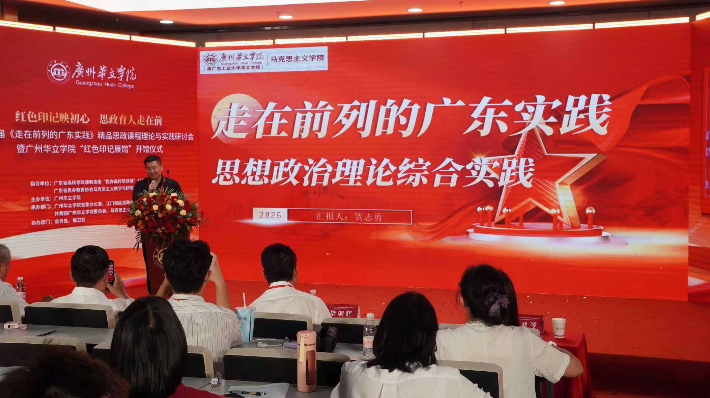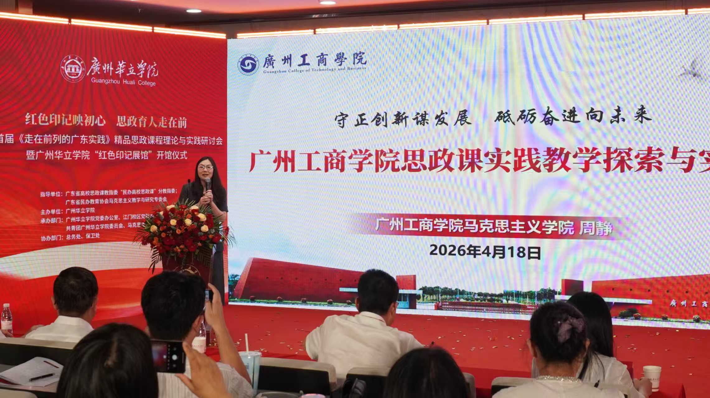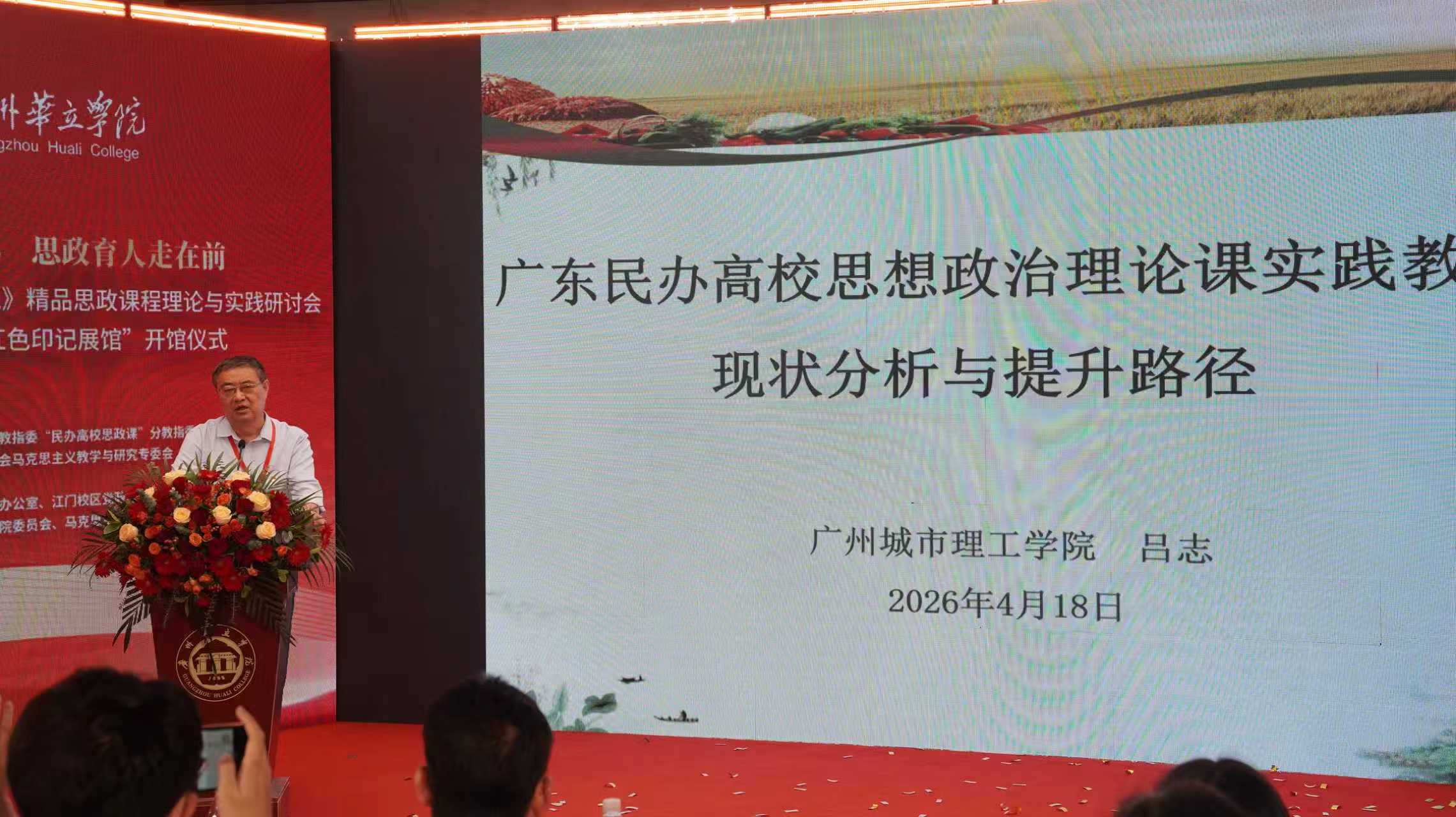 为深入学习贯彻习近平总书记关于学校思政课建设的重要指示精神,落实省委宣传部、省教育厅关于开设《走在前列的广东实践》精品思政课程工作部署,2026年4月18日,首届《走在前列的广东实践》精品思政课程理论与实践研讨会暨广州华立学院“红色印记展馆”开馆仪式在广州华立学院江门校区圆满举行。