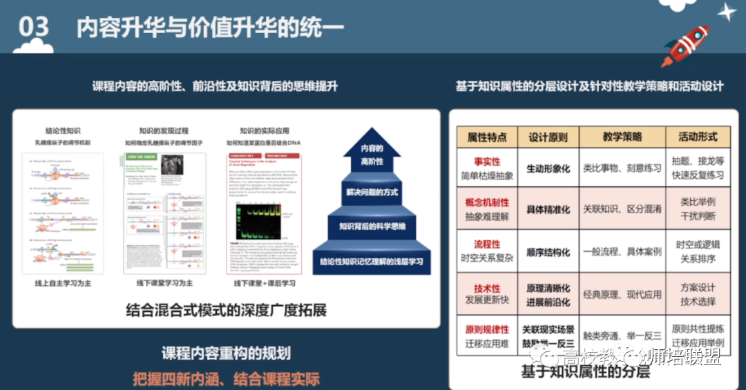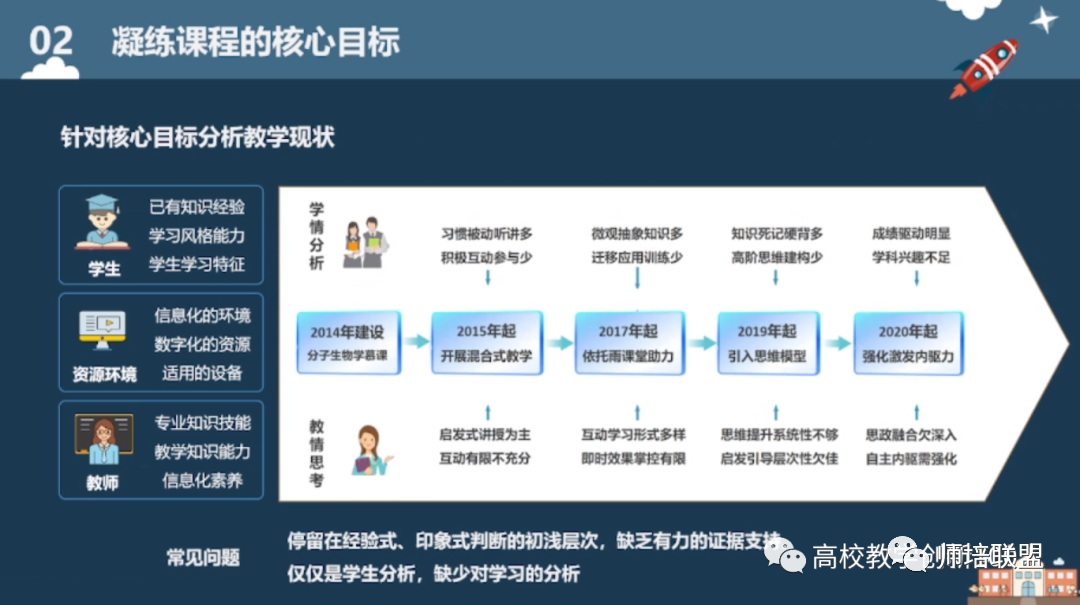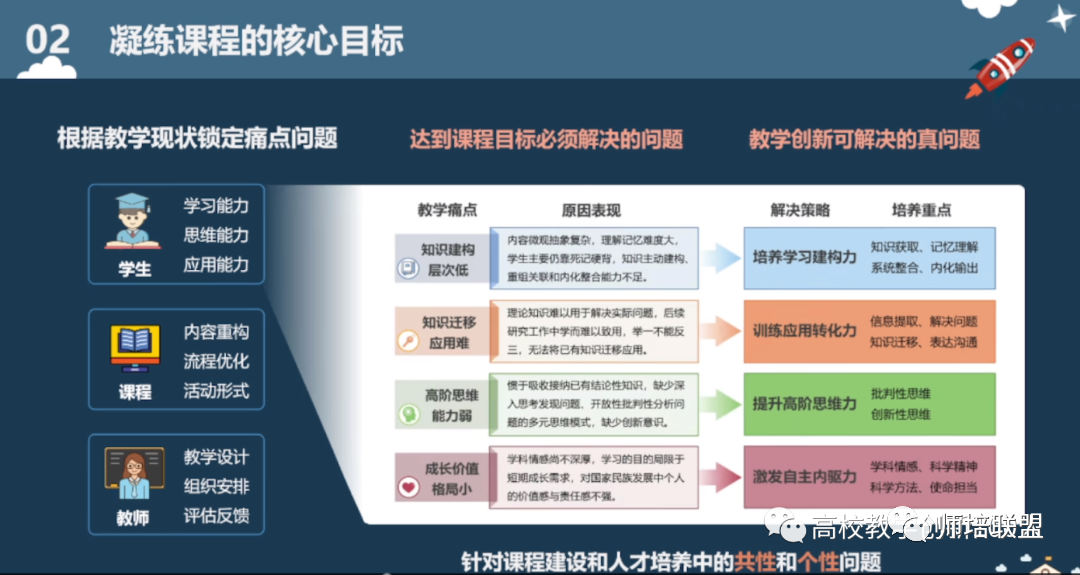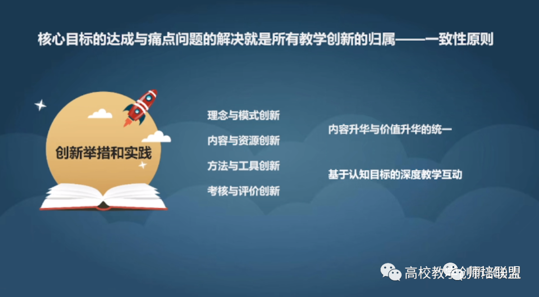 报告主要围绕五个方面展开:1)教学创新的核心;2)凝练课程的核心目标;3)内容升华与价值升华的统一;4)基于认知目标的深度教学互动;5)如何有效开展教学评价